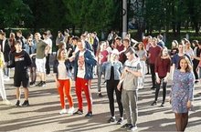 Выпускники 1б класса на репетиции самого главного танца выпускного вечера.