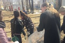 10б в этот прекрасный солнечный день вышли на уборку территории.