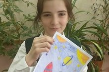 Ученица 5в класса, Кадимова Эмиля, участвует в конкурсе рисунков в рамках Республиканской акции «108 минут вместе с Юрием Гагариным».