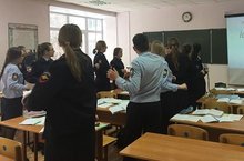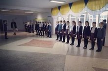 "Взвод! Равняйсь! Смирно!" Ученики 5а класса начали подготовку к конкурсу смотра строя и песни. Командир взвода Фассахов Данияр, помощь в отработке строевого шага оказывает выпускник лицея Фассахов Динар.