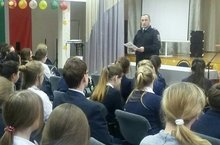 26 октября в нашем лицее прошла встреча с зам.командира ОРДПС ГИБДД Управления МВД Росиии по НМР Котковым Романом Ивановичем. Он провел беседу по ПДД, показал видеоролики по ДТП,ответил на вопросы ребят.