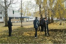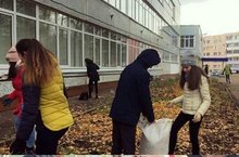 Ученики 8б класса вышли на уборку школьной территории.