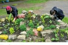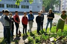 Ребята из трудовых отрядов лицея ухаживают за школьными клумбами на научной основе: сначала теория по ландшафтному дизайну, затем практика.
