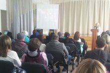 Пока будущие первоклассники, под руководством опытных учителей, с усердием прописывали буквы в тетрадях , их родители продолжали постигать основы школьной жизни. Сегодня экскурсоводами были учитель начальных классов Мензелинская Н.П. и педагог-организатор Чумак Н.В., которые раскрыли значение загадочной аббревиатуры ФГОС, рассказали, что общего и чем различаются ФГОС ДО и ФГОС НОО.