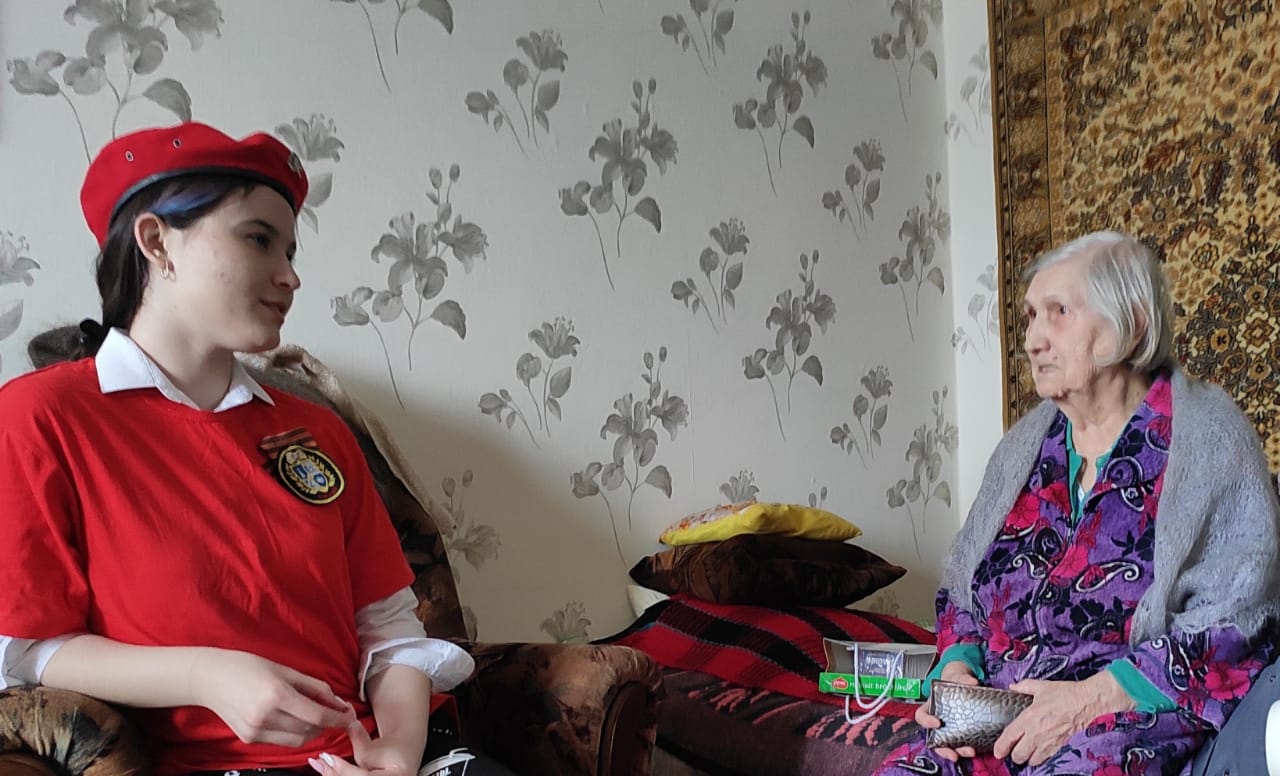 8 Март-Халыкара хатын-кызлар көнендә 10А сыйныф укучылары, сыйныф җитәкчесе Мингулова Э.Г. белән бергә ветеран, тыл хезмәтчәне Перепелкина Валентина Павловнаны котладылар. Изге теләкләр белән Валентина Павловнага чәчәкләр һәм истәлекле бүләк тапшырдылар, аңа сәламәтлек, озын гомер һәм күңел күтәренкелеге теләделәр.