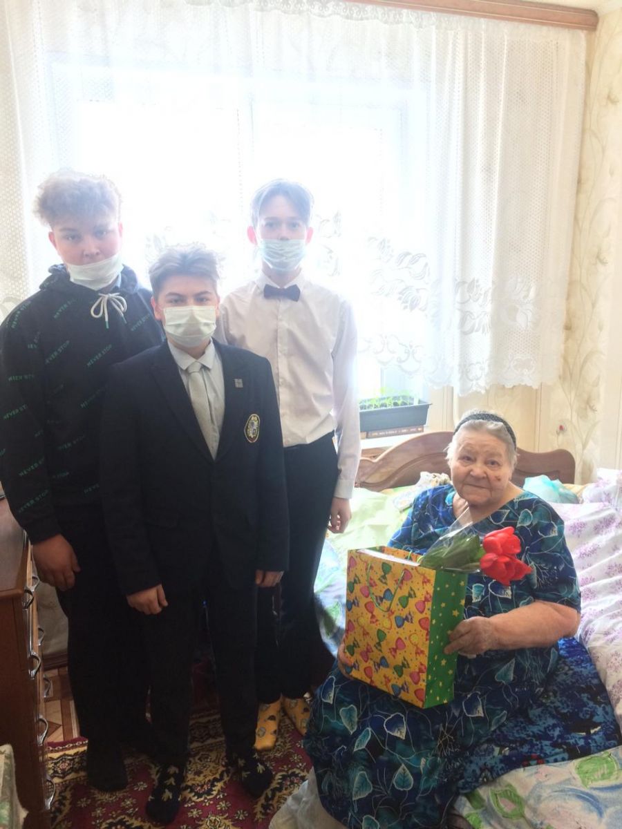 В Международный женский день 8 Марта ученики 10А класса вместе с классным руководителем Мингуловой Э.Г. поздравили ветерана, труженицу тыла Перепелкину Валентину Павловну. С теплыми и добрыми пожеланиями Валентине Павловне вручили цветы и памятный подарок, пожелали ей здоровья, долголетия и бодрости духа.