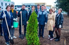 В рамках празднования дня города сегодня в Нижнекамске на улице Менделеева в сквере им. Менделеева Д.И. были высажены туи, можжевельники и кустарники «Кизильник».