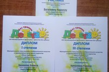 Диплом III степени (номинация "Все краски детства") - Камалиева Рамина (уч. Харисова Г.М.).