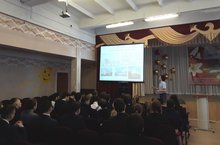 Сегодня в лицее состоялась встреча учащихся 10, 11 классов физико-математического, физико-химического напрвления с Гарифуллиным Аделем Ильдусовичем, выпускником лицея 2010 года, аспирантом 4 г.о. Института физики КФУ, преподавателем факультета доп. образования Малого университета КФУ. Учащиеся ознакомились с историей университета, с выдающимися учеными и преподавателями, узнали правила поступления и проходные баллы в институты КФУ.