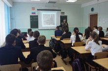 Урок мужества 17.02.2017 В 7б классе прошел Урок мужества", посвященный Всероссийской общественно-государственной инициативе "Горячее сердце". Перед ребятами выступил ветеран боевых действий в Афганистане Кошкин Н.М.