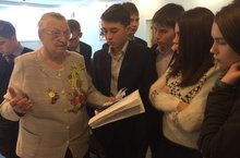 К 70-ти летию Победы 28.01.2015 27 января учащиеся лицея 10в,7б классов приняли участие в мероприятии "Запомни, этот город -Ленинград, запомни, это люди-ленинградцы!" После мероприятия состоялась беседа с блокадницей Ленинграда Адылевой А.Н.