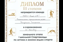 I школьная Спартакиада по летним и зимним видам спорта 31.03.2014 29 марта команда лицея №35 приняла участие в финальном этапе соревнований по волейболу I школьной Спартакиады по летним и зимним видам спорта, которые проходили в г. Мамадыш. В финале приняли участие команды Альметьевска, Чистополя, Набережных Челнов и Зеленодольска. Наша команда заняла 3 место и награждена Дипломом, кубком и медалями. Поздравляем!
