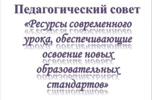 Педагогический совет 30.12.2013 27 декабря 2013 года в МБОУ «Лицей №35» состоялся педагогический совет на тему «Ресурсы современного урока, обеспечивающие освоение новых образовательных стандартов». Все педагоги лицея и 2 методиста Отдела учебно-методического обеспечения при УО НМР РТ (Офицерова А.М., Кречетова Е.М.) посетили 8 уроков в 5-х классах, которые были построены с учетом ФГОС ООО и с применением новых эффективных методик преподавания (сингапурские методы обучения и воспитания). Слова благодарности выражаем всем ученикам 5-х классов и учителям, показавшим отличные уроки: Горюнова А.В., Хужанбердиева Ч.Т., Андреева А.А., Усманова Н.И., Тихонова И.Н., Минеева Н.Г., Фазуллина А.Д., Хакимова А.Г.