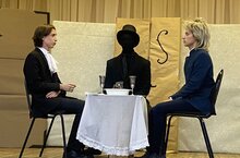 1 место - 11В класс (кл.рук Бликина Т.А); 2 место-11Б класс (кл.рук Молчанова Н.В), и 11Г класс (кл. рук Рогозина А.В).Поразили зрителей и жюри актерским мастерством учащиеся 10-х классов: «Лучший актер» -Исбатов Фархат, 10А класс; «Лучшая актриса» - Левшина Виктория, 10Б класс; «Лучший дуэт» - Салихов Альберт и Карпов Марк, 10Г класс.