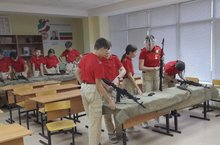 Традиционное утреннее занятие юнармейцев по пятницам сегодня было посвящено сборке и разборке автомата. Руководитель юнармейского отряда Григорий Иванович акцентировал, что все работы по сборке и разборке автомата Калашникова должны выполняться на твёрдой поверхности, детали необходимо укладывать в порядке разборки. Сборка ведётся в обратной последовательности Пусть первый раз ещё трудно, но еженедельные занятия позволят ребятам довести это умение до автоматизма. Ко Дню Защитника Отечества юнармейцы уже сами смогут показать мастер-класс в смотре строя и песни, разборке и сборке автомата, подтягивании.