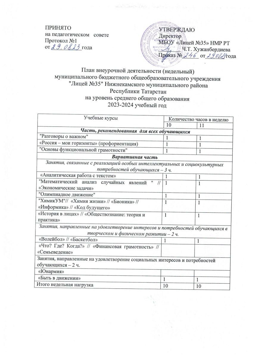 План внеурочной деятельности на уровень СОО