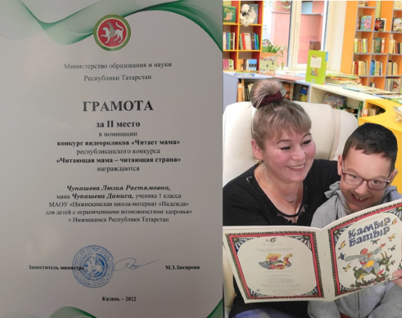 Стали известны долгожданные результаты республиканского конкурса "Читающая мама - читающая страна". Поздравляем Чупашеву Люзию Растямовну, маму Чупашева Даниса, ученика 1 А класса (кл.руководитель: Капаева Э.И.), занявших 2 место в номинации "Конкурс видеороликов. Читает мама". Желаем дальнейших творческих успехов!