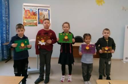 Ученики начальных классов приняли участие в мероприятии, посвящённом Дню Великой Победы. Ребята узнали об истории георгиевской ленточки, значении нагрудных знаков, о героических подвигах во время Великой Отечественной Войны. Дети с интересом участвовали в мастер-классе по изготовлению броши из георгиевской ленточки.