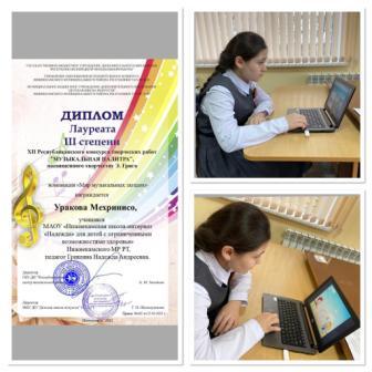 Поздравляем Уракову Мехринисо, ученицу 7 класса с победой в республиканском конкурсе творческих работ "Музыкальная палитра", посвященного творчеству Э.Грига. Мехринисо награждена Дипломом Лауреата III степени. Молодец! Желаем не останавливаться на достигнутом результате и стремиться к новым победам!