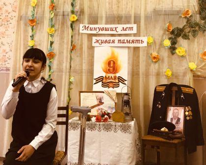 В преддверии празднования 77-ой годовщины победы в Великой Отечественной войне в школе педагогами было подготовлено мероприятие "Минувших лет живая память", на котором были задействованны практически все учащиеся старшего и среднего звена. Учащиеся читали стихи о войне, о героях, пели военные песни. Ведущие мероприятия - старшеклассники, рассказали о том, какой ценой досталась нашему народу победа в Великой Отечественной войне. В минуту молчания почтили память погибших.