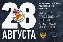 28 августа состоится ежегодное Общероссийское родительское собрание, во время которого Министр просвещения Российской Федерации Сергей Кравцов ответит на вопросы родителей школьников. При этом общение с главой ведомства пройдёт в формате диалога с прямыми включениями из разных регионов страны. Вопросы Министру принимаются до 22 августа включительно. Их можно направить через специальный сервис на сайте Минпросвещения России, а также оставить на сайте Национальной родительской ассоциации https://nra-russia.ru/ и в официальных аккаунтах в социальных сетях https://www.facebook.com/minprosvet и https://vk.com/minprosvet, https://vk.com/nrarussia и https://www.facebook.com/nrarussia -