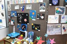В рамках празднования Дня космонавтики организована выставка сотворчества детей, родителей и педагогов дошкольного отделения и Центра реабилитации.