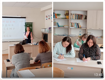 Опубликовано: 09.04.2023Школа стала одной из площадок для проведения Тотального диктанта. Приняли участие все, кто желал проверить свою грамотность. Теперь ждём результаты.