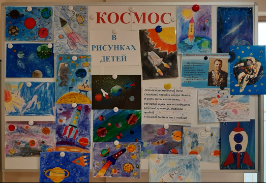Для учащихся был организован просмотр фильма "Так начиналась легенда", проведены беседы с просмотром интересных презентаций. Также ребята приняли участие в выставке рисунков "Космос в рисунках детей"
