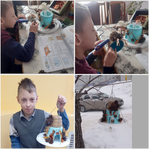 Опубликовано: 30.01.2024Ученик 4 Б класса Демченко Виталий вместе с бабушкой сделали кормушку для птиц.