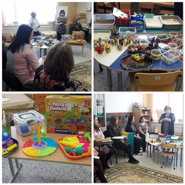 Опубликовано: 21.03.2024Согласно плана работы МО учителей-логопедов, учителей-дефектологов, педагогов-психологов, узких специалистов дошкольного отделения и отделения центра реабилитации МАОУ "Надежда" прошло заседание по теме "Методы пеcочной терапии в коррекционно-развивающей работе специалистов психолого-педагогического профиля с целью формирования пространственно-временных представлений у детей с ОВЗ". В ходе теоретической части МО специалисты совершенствовали и углубляли знания по методике использования методов пеочной терапии в работе с детьми с ОВЗ. Рассмотрели разные виды песочниц, их преимущества, правила организации рабочего места в пространстве песочницы. В практической части участники МО практиковались в проведении игр и упражнений с детьми раннего, дошкольного и младшего школьного возраста с использованием классической песочницы и светового стола, делились опытом работы в данном направлении.