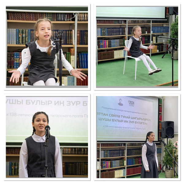 Опубликовано: 13.04.2024 В Центральной библиотеке им. Г. Тукая прошел финал ежегодного конкурса мастеров художественного слова "ЯТТАН СӨЙЛӘ ТУКАЙ ШИГЫРЬЛӘРЕН, ШУШЫ БУЛЫР ИҢ ЗУР БҮЛӘГЕҢ", посвященного 138-летию со дня рождения великого татарского поэта Г.Тукая. Конкурс стал доброй традицией нашего города и проходит в этом году уже в 32й раз. Было подано более 150 заявок. Наши ученицы Суптеля Сабина (руководитель Гараева Гульназ Талгатовна) и Уракова Мехринисо (руководитель Саттарова Гулюса Явдатовна) приняли участие и прошли в финал. Суптеля Сабина награждена «Дипломом финалиста». Уракова Мехринисо заняла 1 место! Поздравляем! Она будет награждена в парке им. Г.Тукая 26 апреля, в День рождения Габдуллы Тукая.