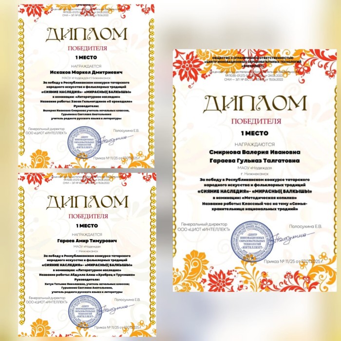 ученика 5 А класса Искаков Маркела, ученика 4 А класса Гараева Амира и учителей Смирнову В. И. и Гараеву Г. Т. с победой.
