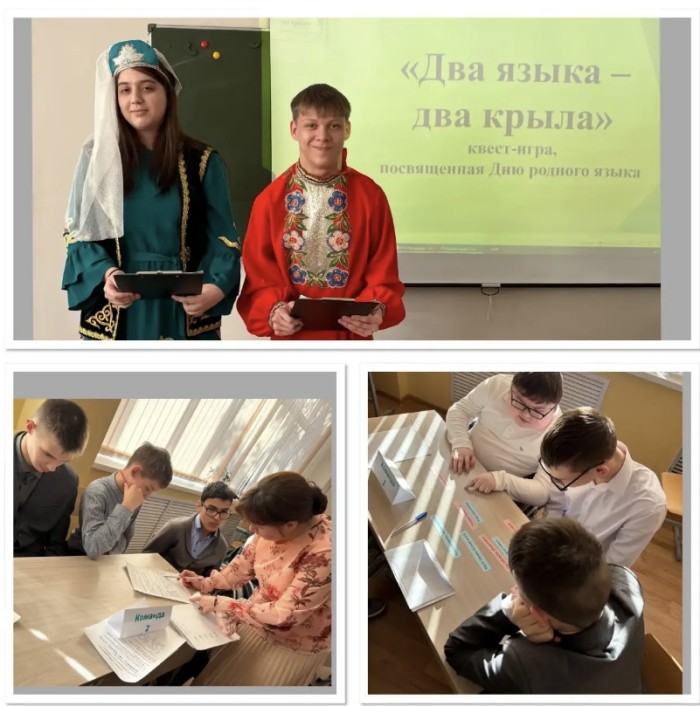 Опубликовано: 20.02.2026Участники квеста были разделены на команды, каждая из которых получила маршрутный лист с заданиями по русскому и татарскому языках. Ребята проходили различные станции, где их ждали интересные испытания: «Языковая викторина», «Собери пословицу», «Угадай фразеологизмы», «Орфографическая разминка». Победителями стали команды, набравшие максимальное количество баллов.