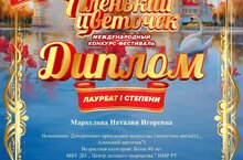 Поздравляем с победой на Международном конкурсе-фестивале при поддержке Министерства культуры РФ "Аленький цветочек":