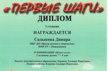 Подведены итоги Республиканского фестиваля- конкурса юных вокалистов "Первые шаги". Поздравляем воспитанниц студии развития татарского вокального таланта "Сандугач" с отличными результатами в номинации "Вокал - соло":