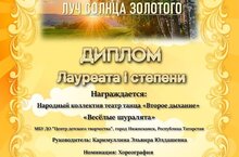 Поздравляем народный коллектив театр танца "Второе дыхание" с победой на Международном многожанровом конкурсе-фестивале народной культуры "Луч солнца золотого" в номинации "Хореография":