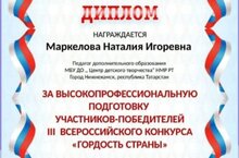 Педагог Маркелова Н.И. была награждена в данной номинации дипломом Лауреата 2 степени.