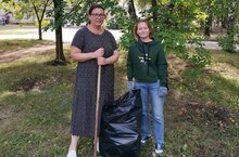 На территории Дворца творчества и молодёжи им.Садыкова состоялся субботник, на который вышли сотрудники учреждений культуры, среди которых педагоги дополнительного образования Кашапова Л. Р. и Чуракова Л. А.