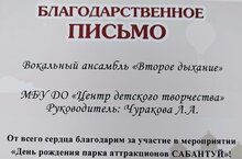 Сегодня в парке аттракционов "Сабантуй" прошёл грандиозный праздник "Веселье NON - STOP", в котором приняли участие наши воспитанники - вокальный ансамбль "Второе дыхание" и его солисты Волкова Варвара и Загидуллина Малика (педагог Чуракова Л.А.)