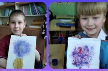 В объединении "Колорит" прошёл открытый урок на тему : "Цветущая сирень". Занятие прошло в нетрадиционной экспериментальной технике - отпечатывание рисунка с помощью мятой газеты и гуаши.