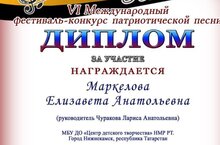 Поздравляем воспитанницу ансамбля русской песни "Звонница" Маркелову Елизавету и её педагога Чуракову Л.А. с победой на VI Международном фестивале-конкурсе патриотической песни "Истина Победы".