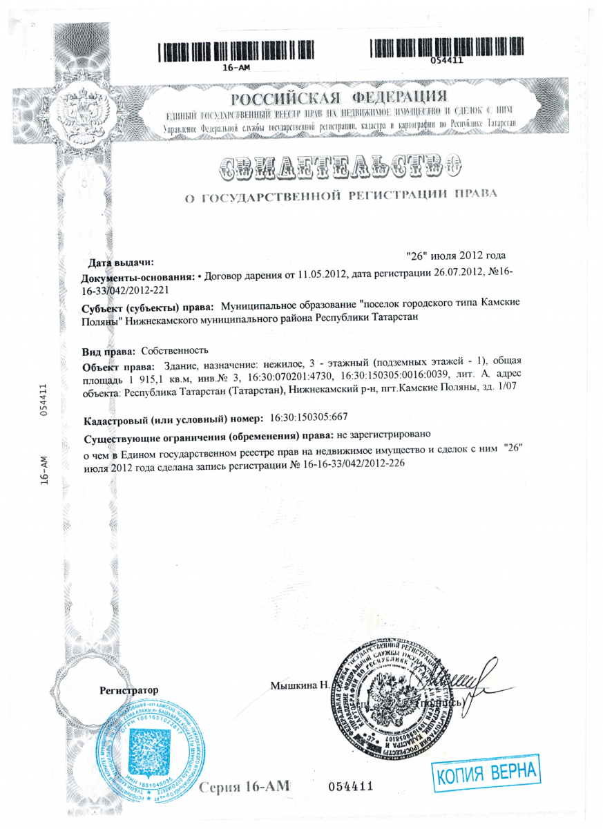 | Адрес: | 423564, Республика Татарстан, Нижнекамский район, пгт Камские Поляны, д.1/07 |