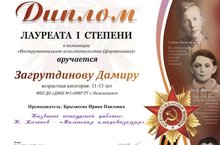 Поздравляем ученика фортепианного отдела ДМШ №1 Загрутдинова Дамира с лауреатством I степени в Международном конкурсе, посвящённом Великой Отечественной войне, «Поклонимся великим тем годам!»!
