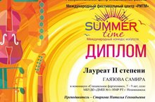 Поздравляем лауреата II степени Международного конкурса искусств «Summer time» Гаязову Самиру!