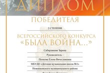 Поздравляем победителей II степени Всероссийского конкурса «Была война...» Сабирзянову Зарину и Уракову Киру!