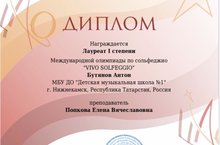 В 2019-2020 учебном году ФГБОУ ВО «Чувашский государственный педагогический университет им. И. Я. Яковлева» и Центр АРТ-образования проводил Международную олимпиаду по сольфеджио «Vivo solfeggio» («Живое сольфеджио»), где ученик ДМШ №1 Бутянов Антон стал лауреатом I степени!