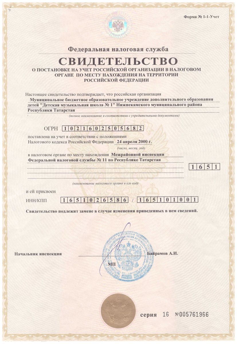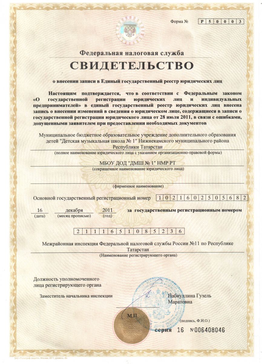 - Свидетельство о внесении записи в ЕГРЮЛ