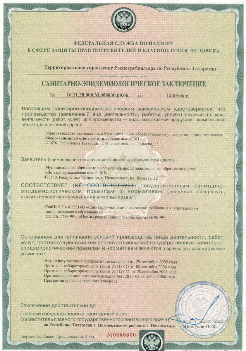 - Санитарно-эпидемиологическое заключение