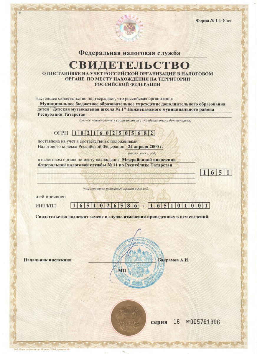 - Свидетельство о постановке на налоговый учет