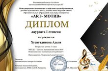 Хуснутдинова Аделя - лауреат I степени